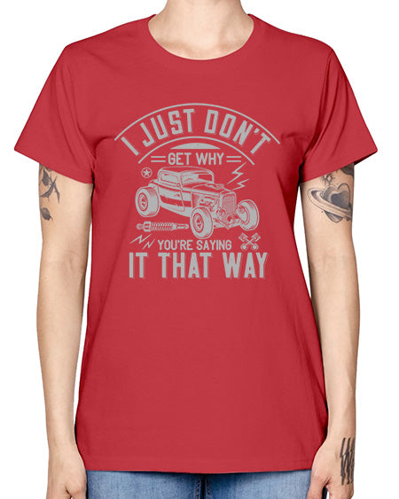 I just dont get why youre saying it that way 101# - hot rod - Missy T-Shirt