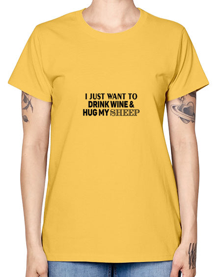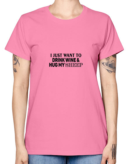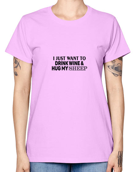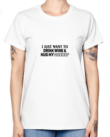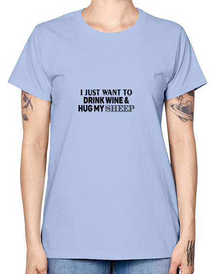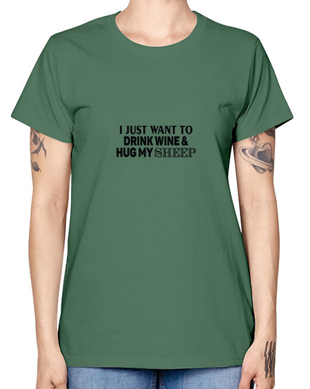 i just want to drink wine hug my sheep 1117# - wine- Missy T-Shirt - 100% preshrunk cotton