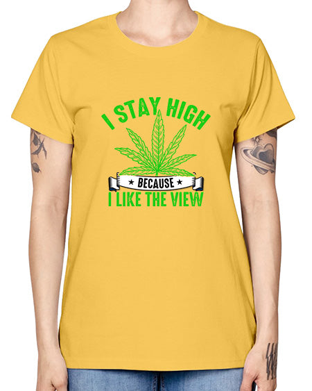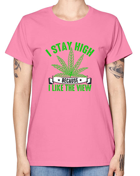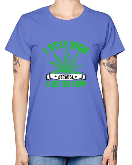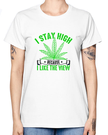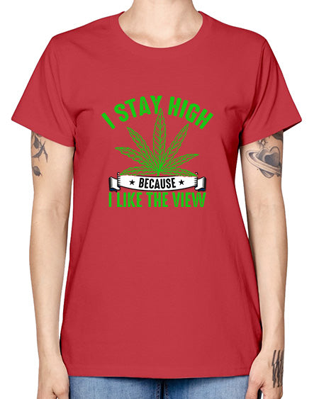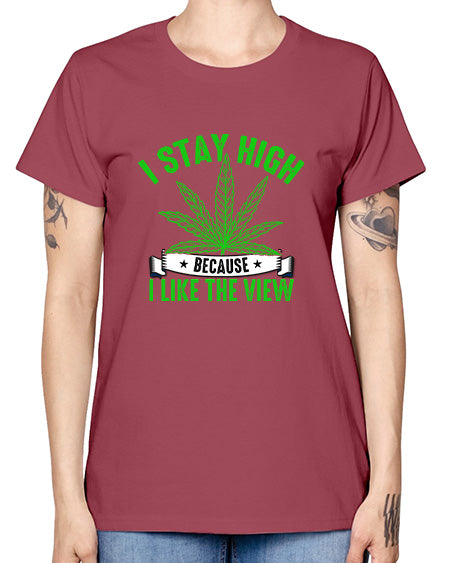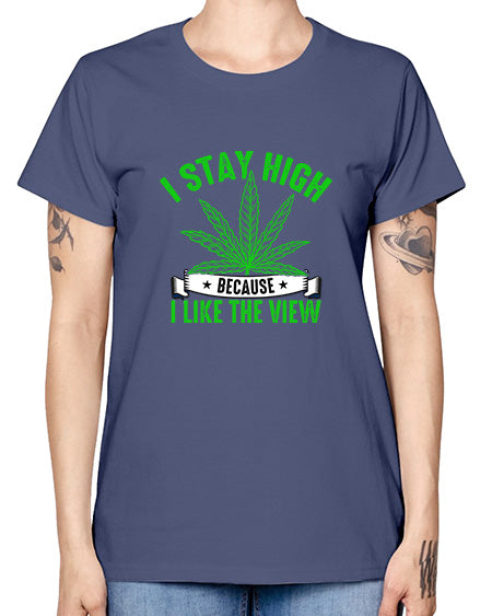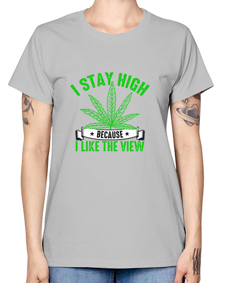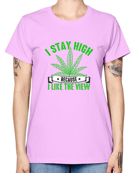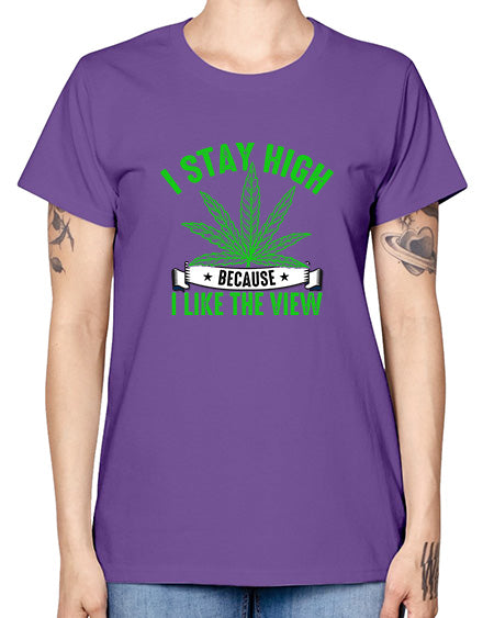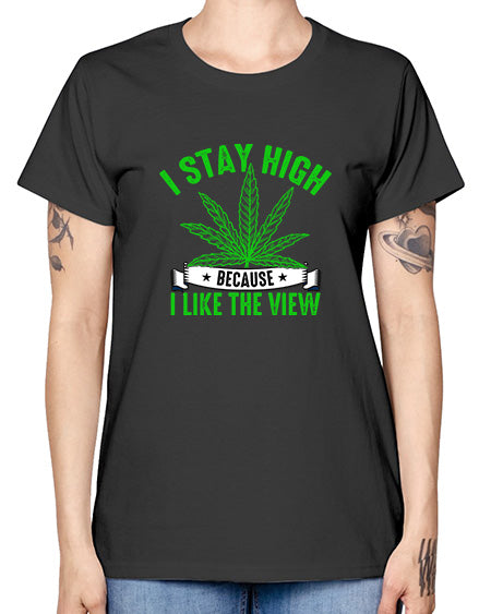 i stay high because i like the view 601# - graphic- Missy T-Shirt - 100% preshrunk cotton
