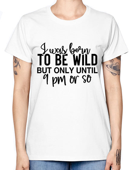 i was born to be wild but only until pm or so 607# - graphic- Missy T-Shirt