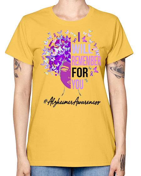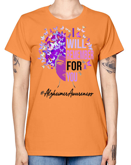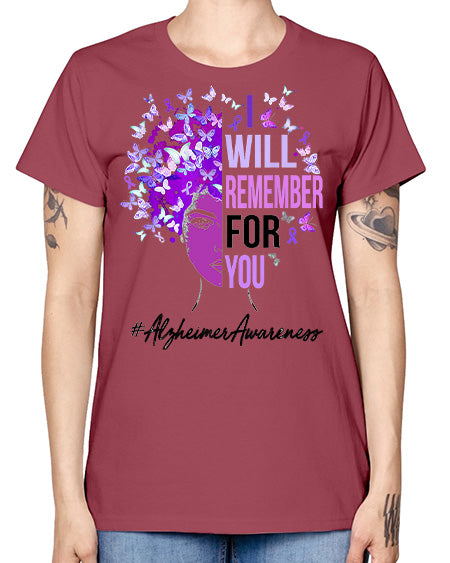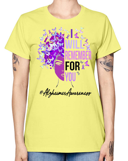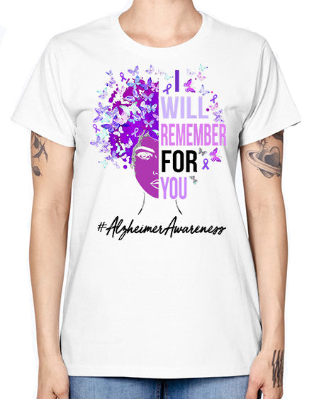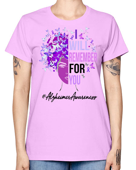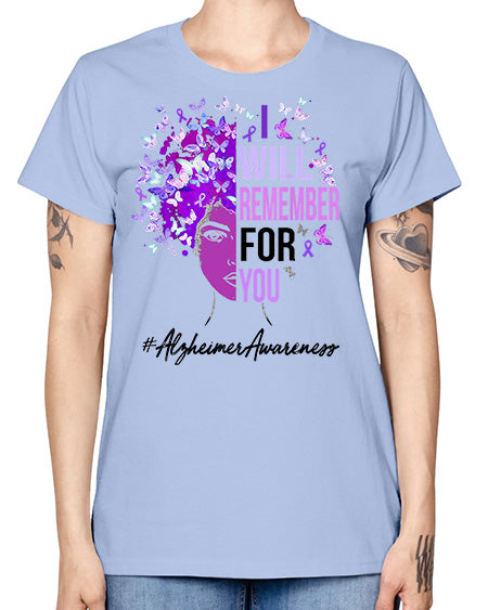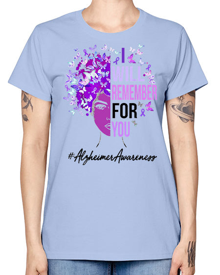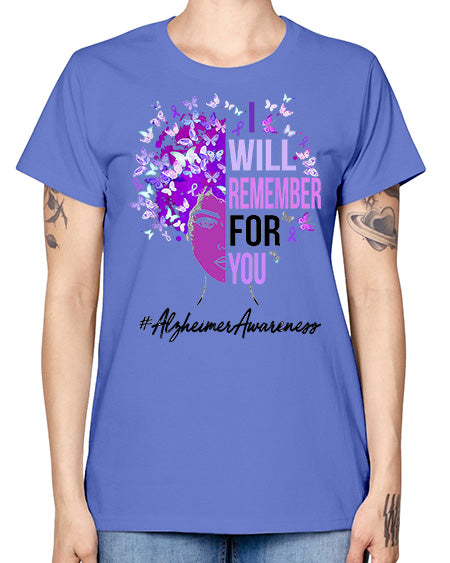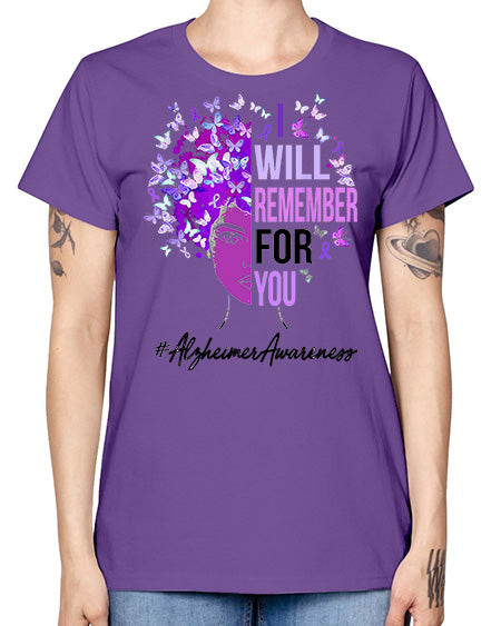 I Will Remember For You Alzheimer Awareness Womens Butterfly 181#