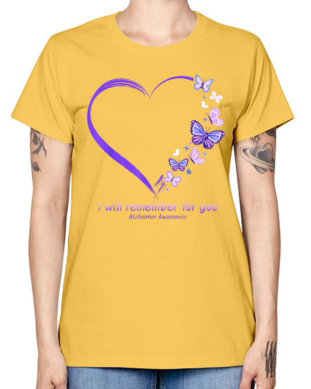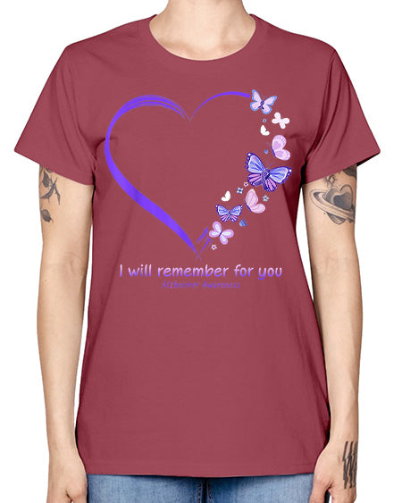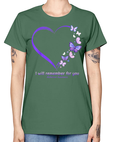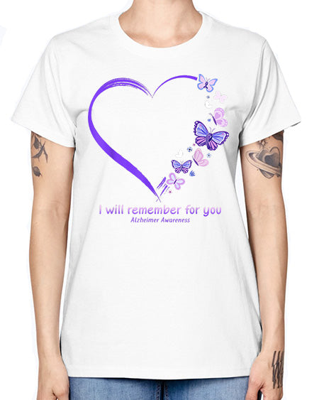 I Will Remember For You Butterfly Alzheimers Awareness 185# - alzheimers - Missy T-Shirt