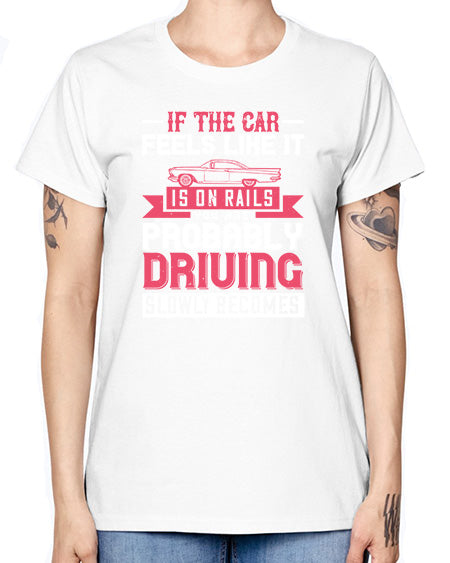 If the car feels like it is on rails you are probably driving too slow 24# - car- Missy T-Shirt