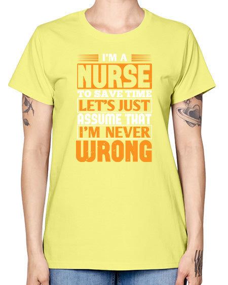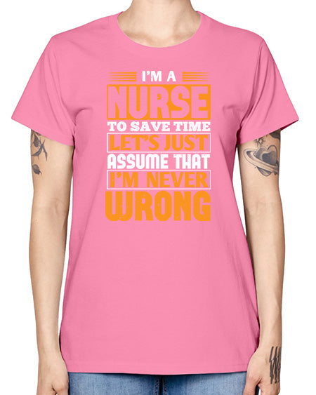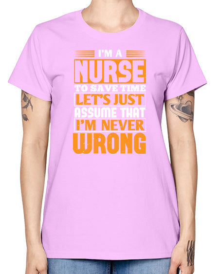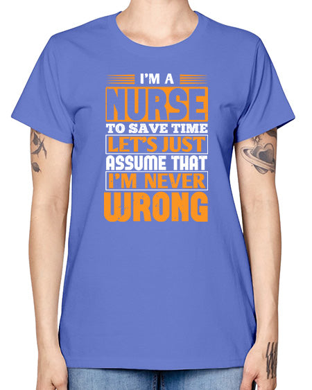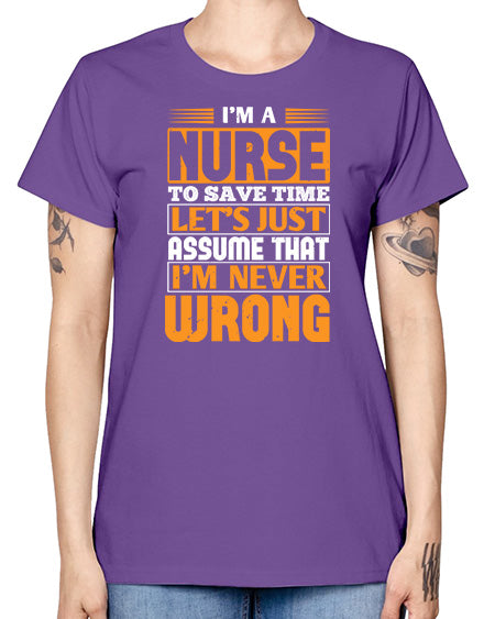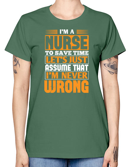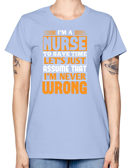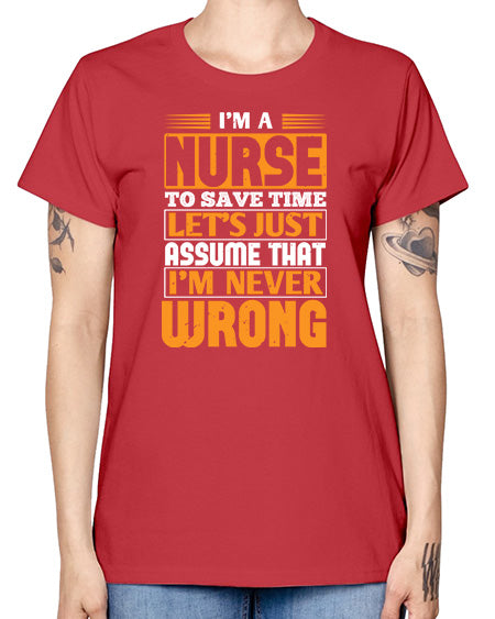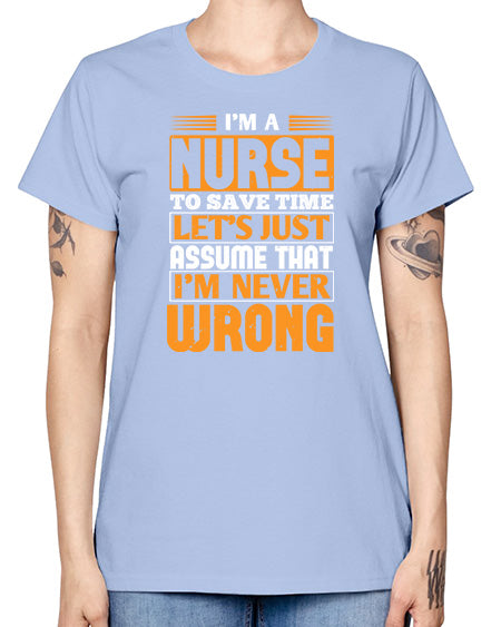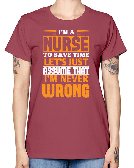 Im a nurse to save time lets just assume that im never wrong Style 1013# - nurse- Missy T-Shirt