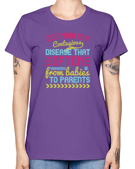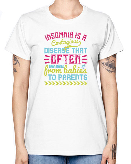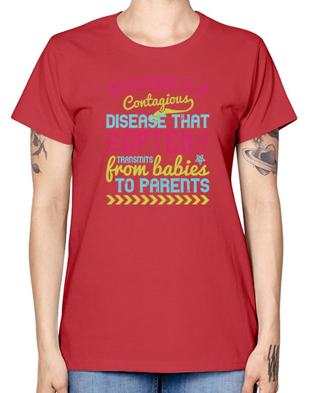 Insomnia is a contagious disease that often transmits from babies to parents Style 352# - babies- Missy T-Shirt