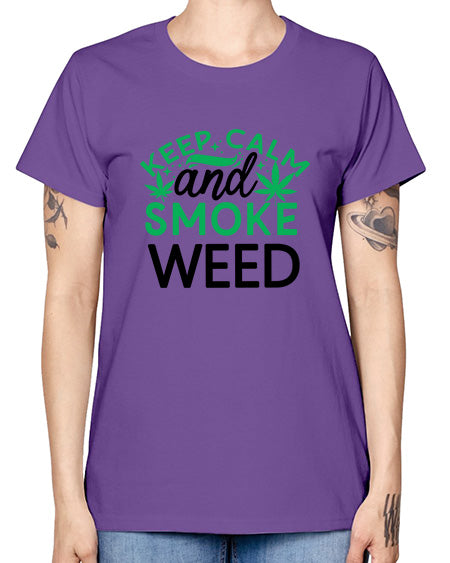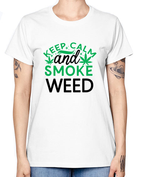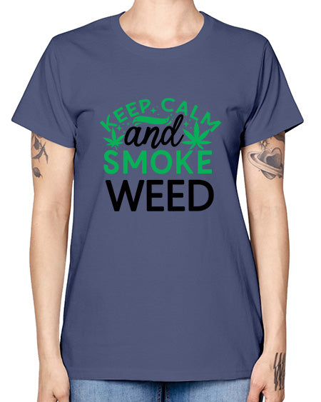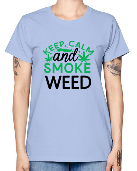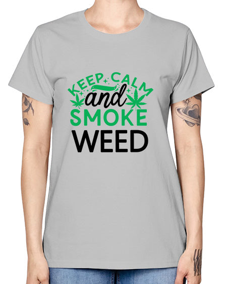 Keep Calm And Smoke Weed 698# - graphic- Missy T-Shirt