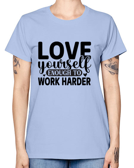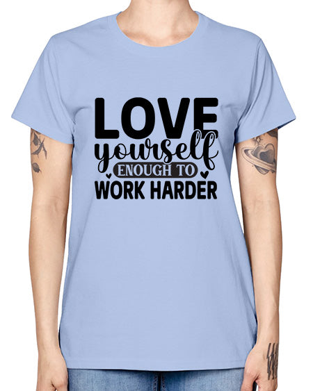 google-site-verification=jVrHOkW2AsgL_ozwUikqFQE6-Ke6U43Z8aLcUbXT5TE Love Yourself Enough to Work Harder 418# - gym - Missy T-Shirt – Tshirt Unlimited