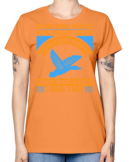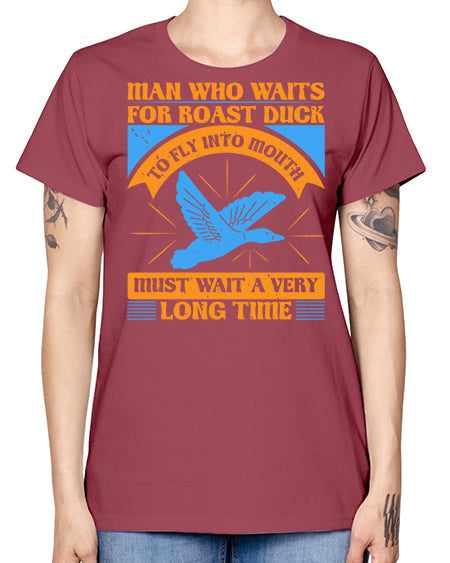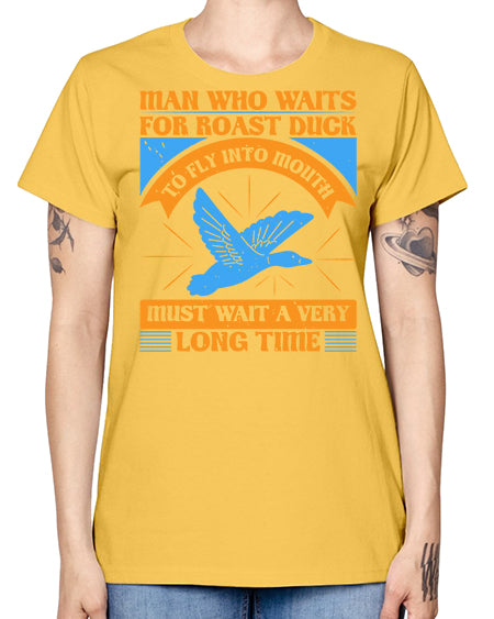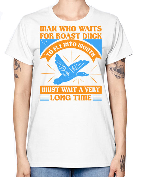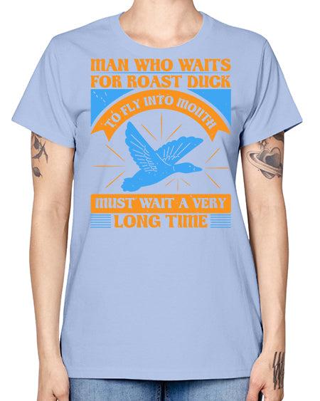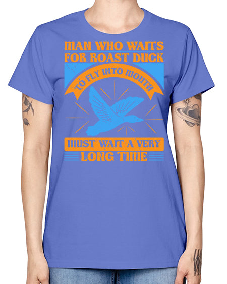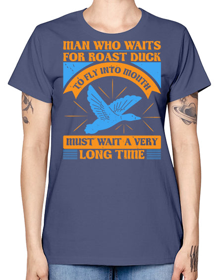 Man who waits for roast duck to fly into mouth must wait a very very long time Style 25# - ducks - Missy T-Shirt