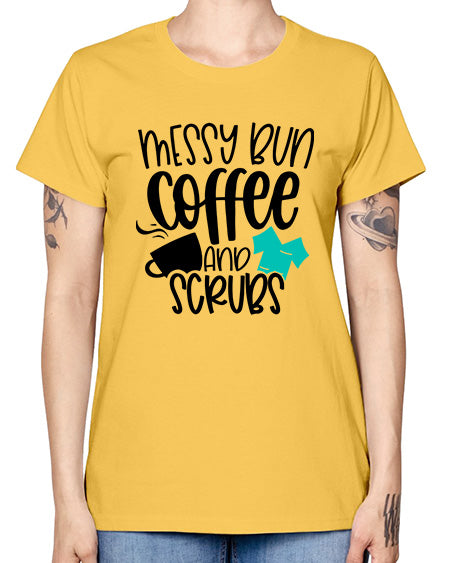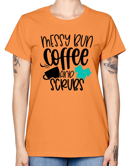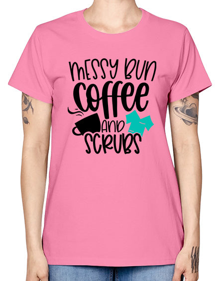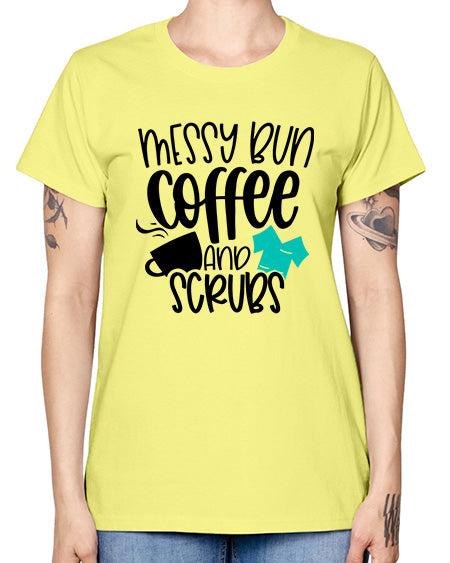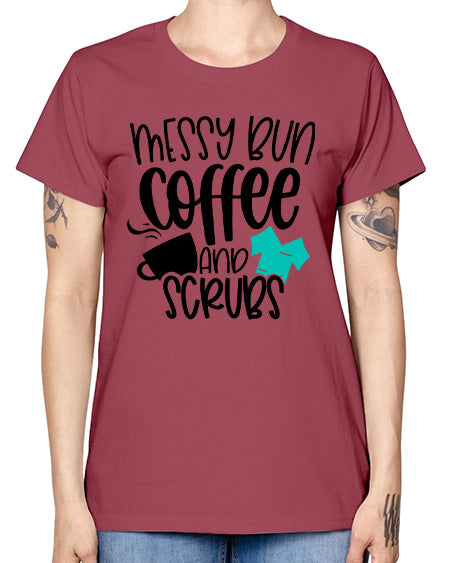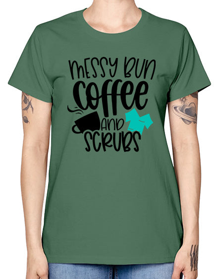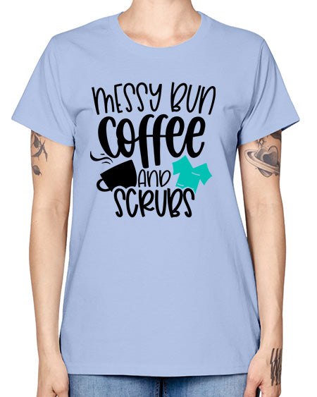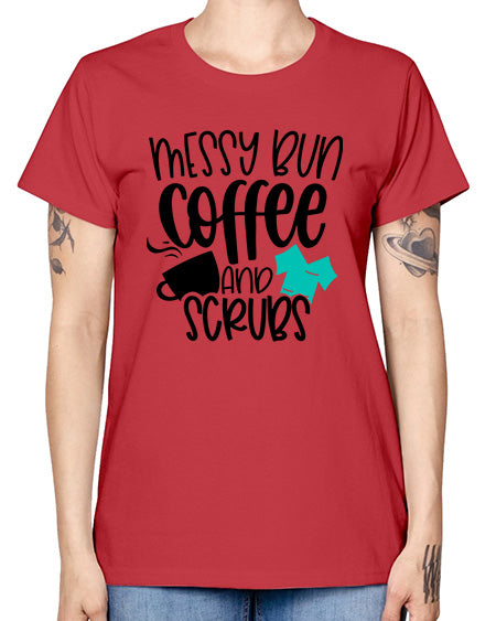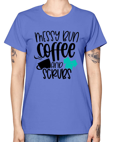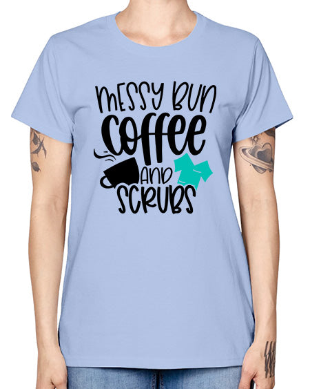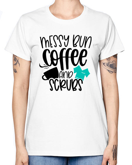 Messy Bun Coffee And Scrubs Style Style 1096# - nurse- Missy T-Shirt