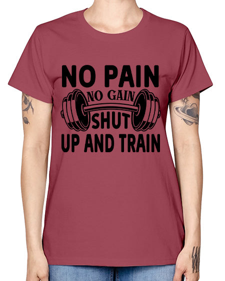 • No Pain No Gain Shut Up and Train 476# - gym- Missy T-Shirt