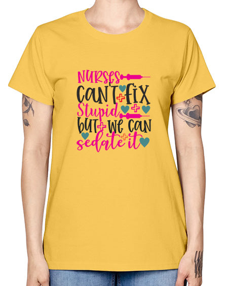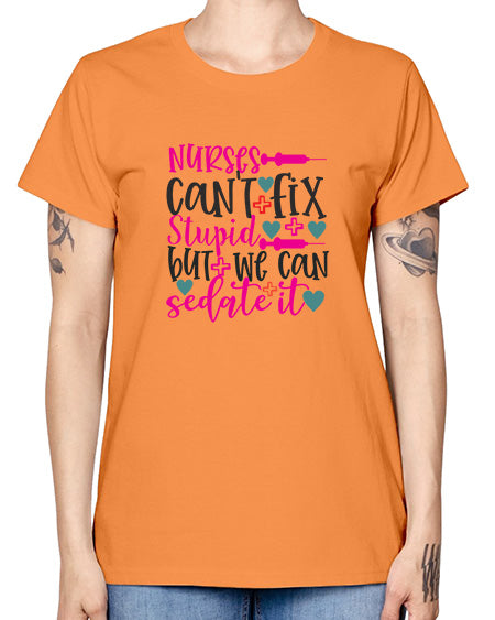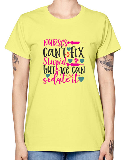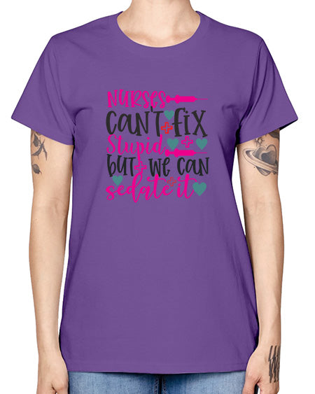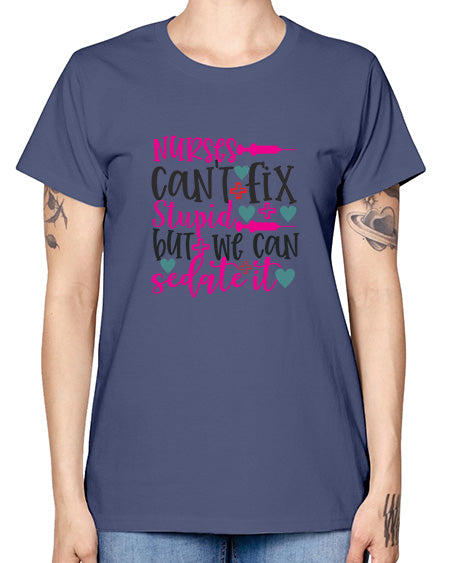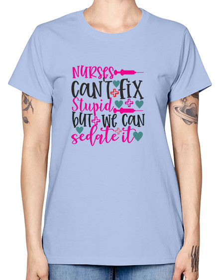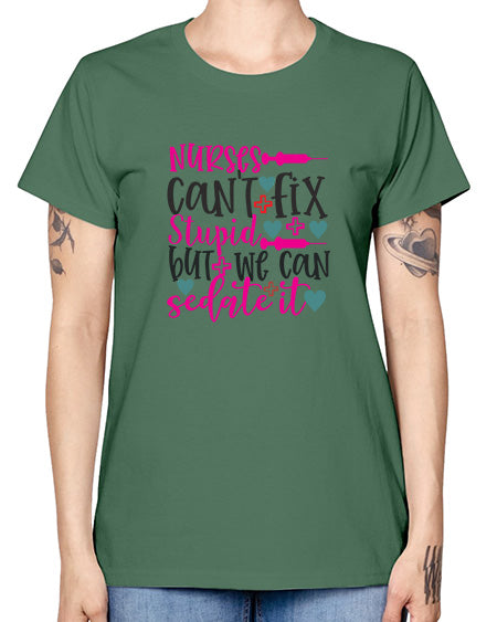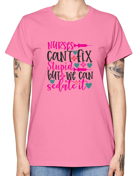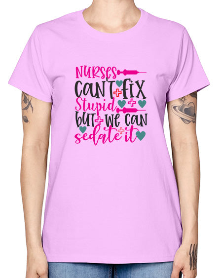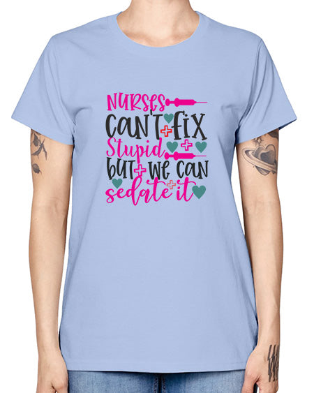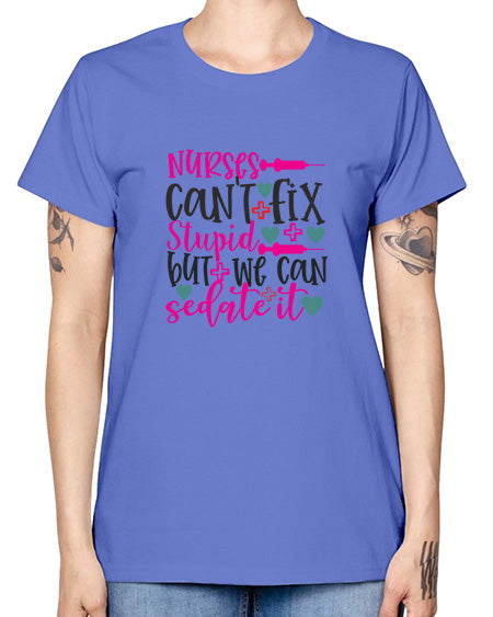 nurses cant fix stupid but we can sedate it Style 1237# - nurse- Missy T-Shirt