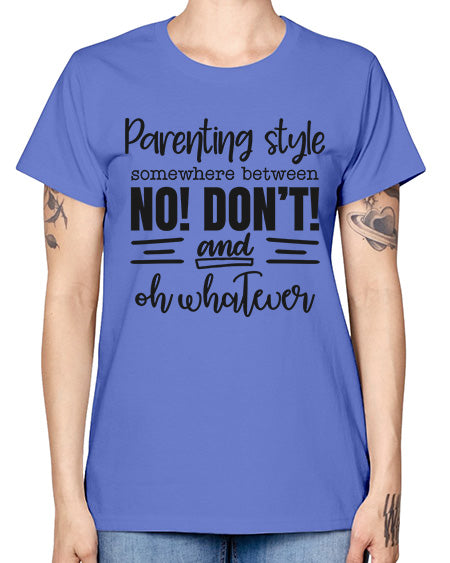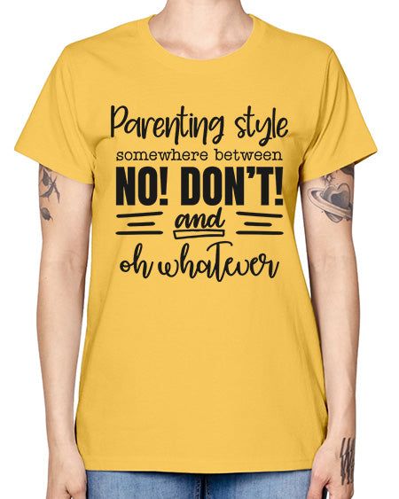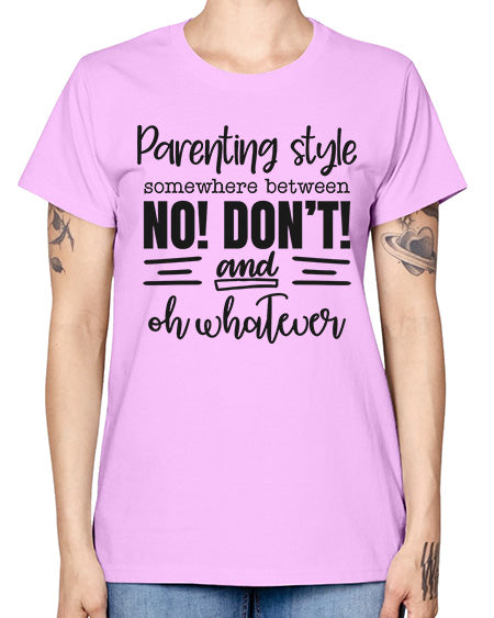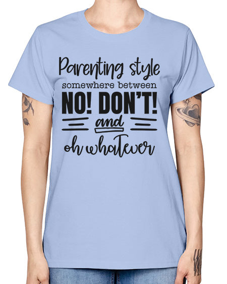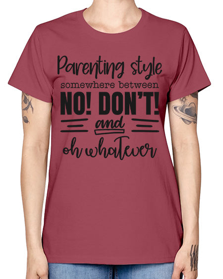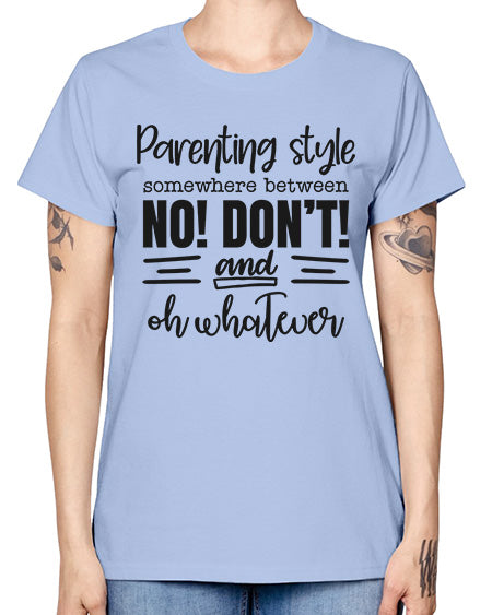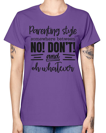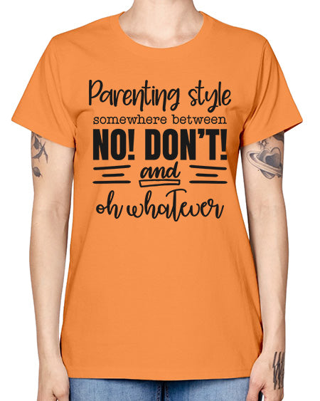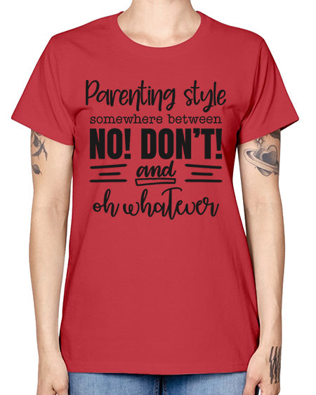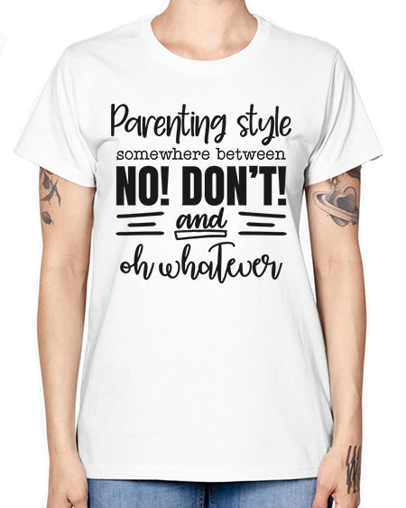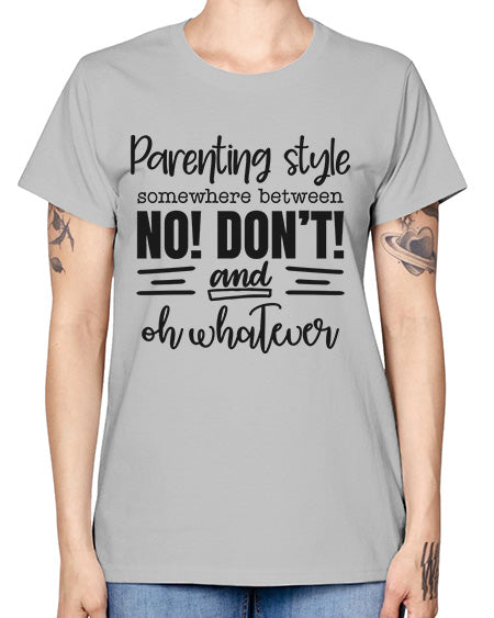 google-site-verification=jVrHOkW2AsgL_ozwUikqFQE6-Ke6U43Z8aLcUbXT5TE parenting style somewhere between no dont and 977# - funny - Missy T-S – Tshirt Unlimited