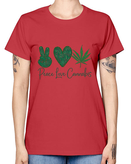 google-site-verification=jVrHOkW2AsgL_ozwUikqFQE6-Ke6U43Z8aLcUbXT5TE Peace Love Cannabis Sublimation 982# - marijuana - Missy T-Shirt – Tshirt Unlimited