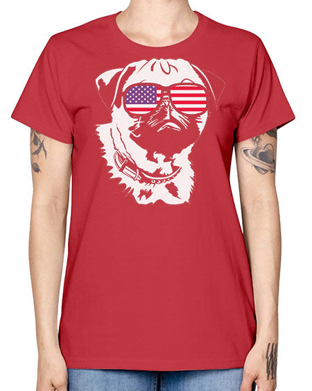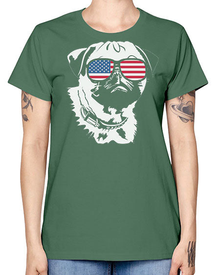 pug dog usa flag shirt 234# - dogs - Missy T-Shirt