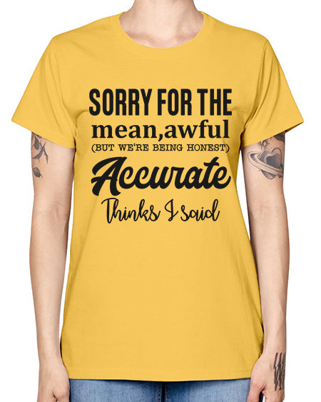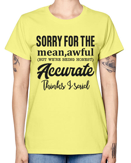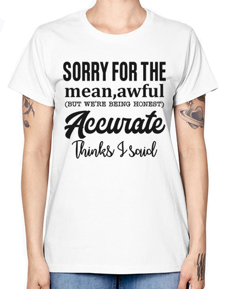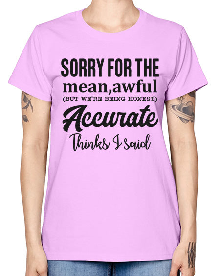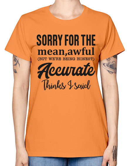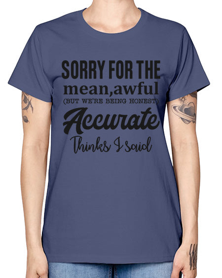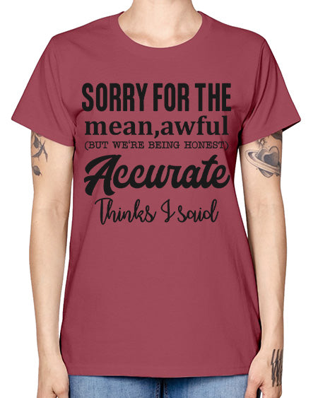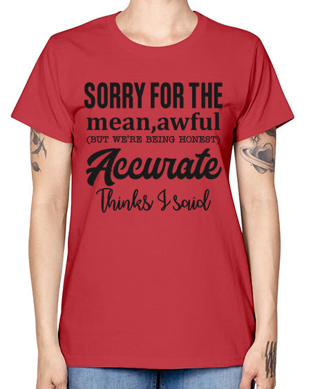 sorry for the mean awful 1098# - graphic- Missy T-Shirt