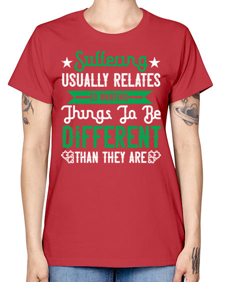 Suffering usually relates to wanting things to be different than they are Style 29# - Sub- Missy T-Shirt