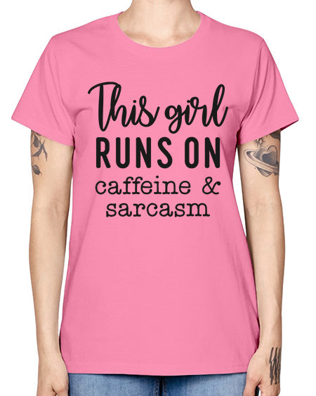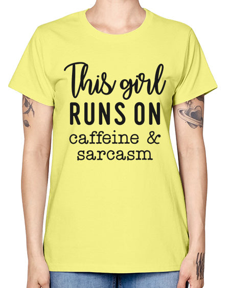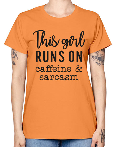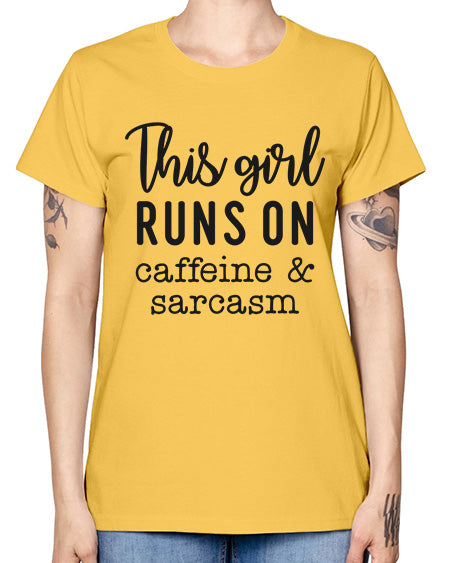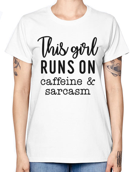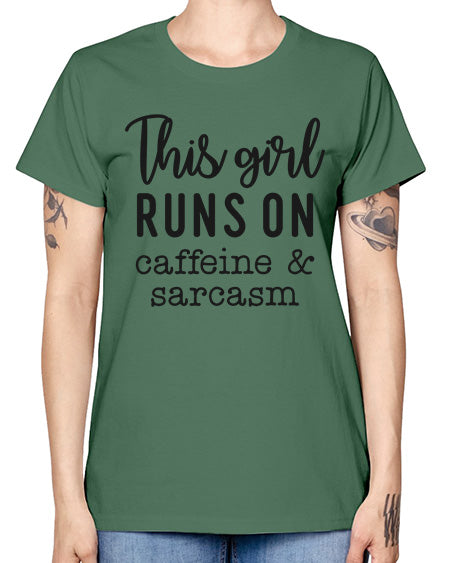 this girl runs on caffeine and sarcasm 1164# - graphic- Missy T-Shirt