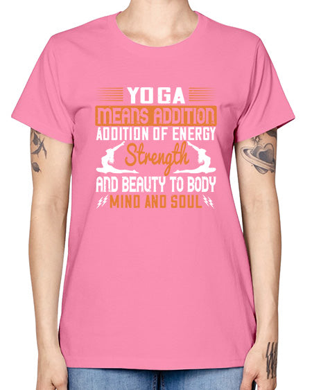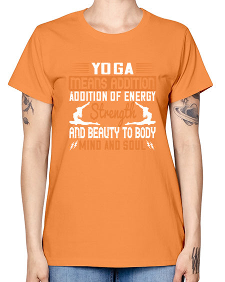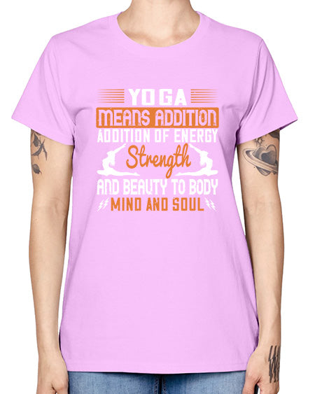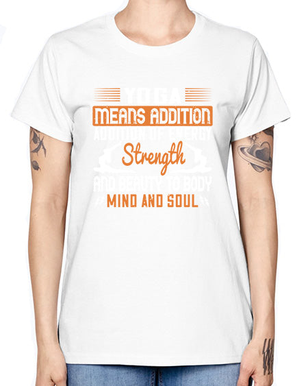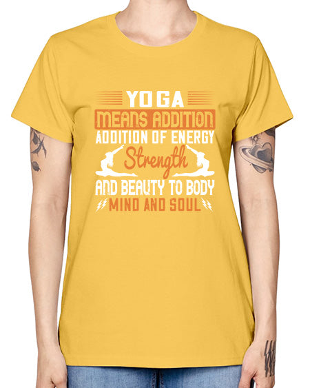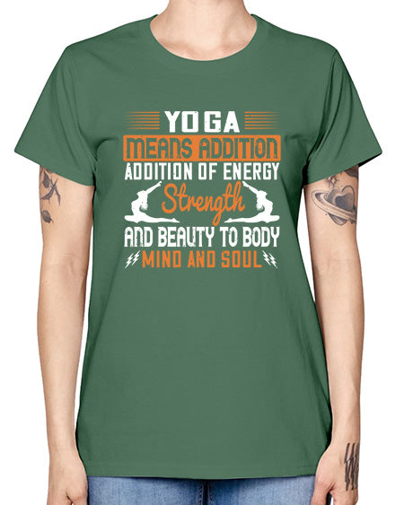 yoga means addition addition of energy strength and beauty to body mind and soul 630# - yoga - Missy T-Shirt