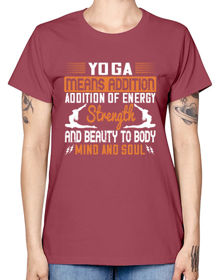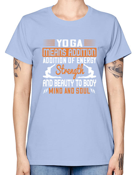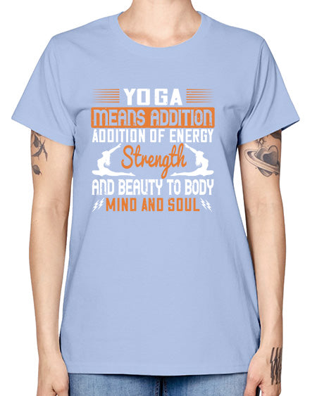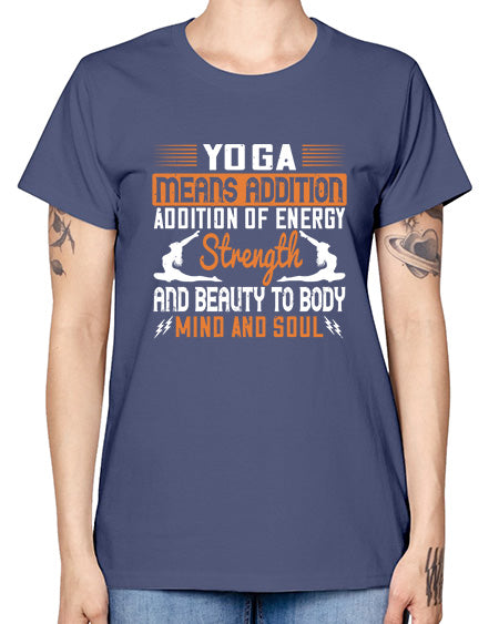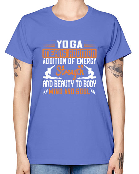 yoga means addition addition of energy strength and beauty to body mind and soul 630# - yoga- Missy T-Shirt
