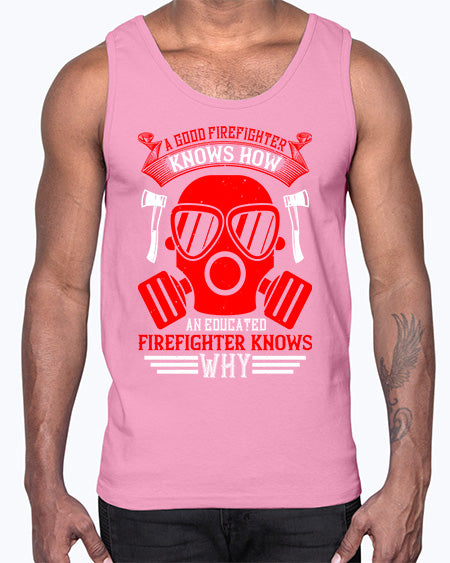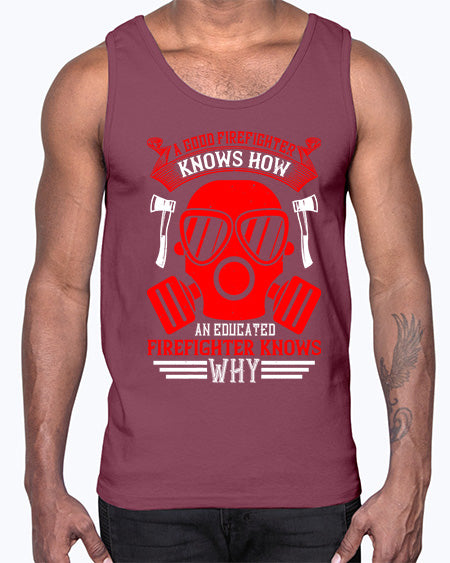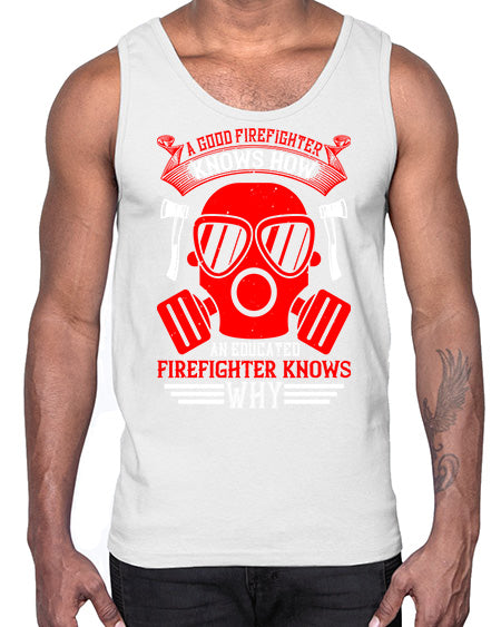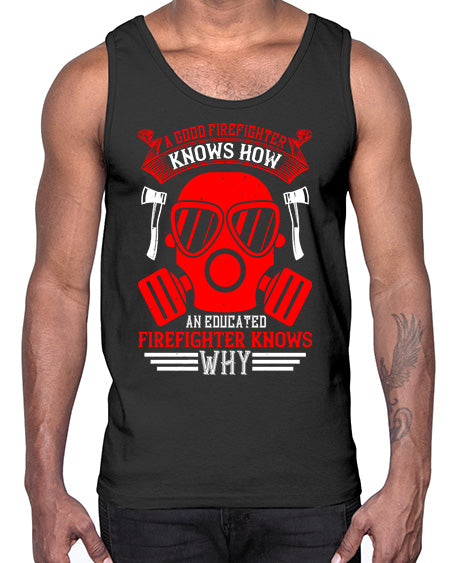 a good firefighter knows how an educated firefighter knows why 554#- fire fighter- Cotton Tank