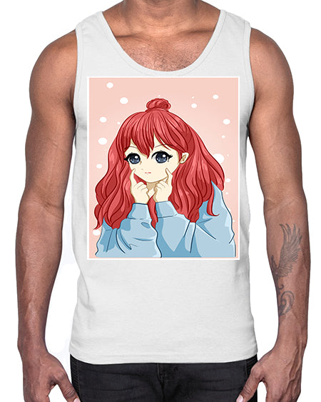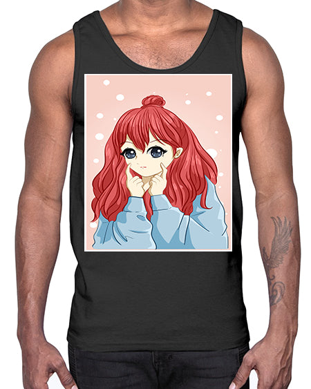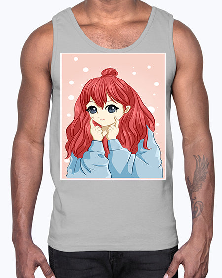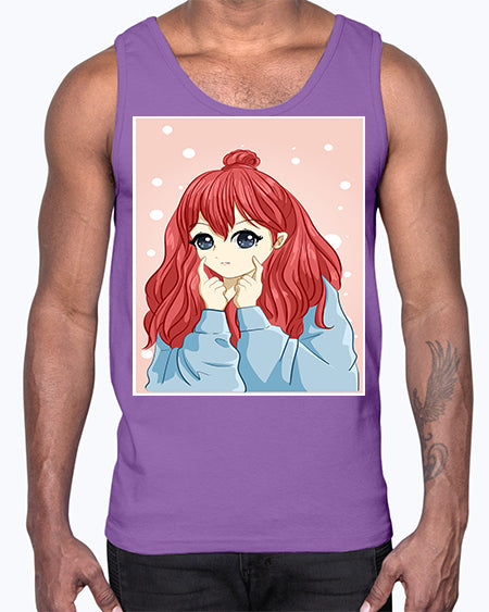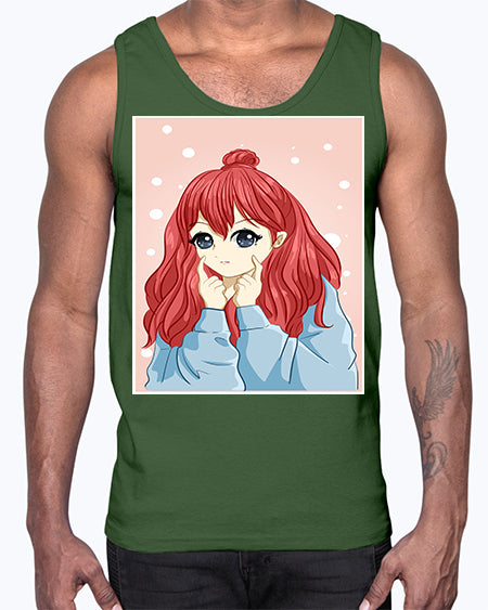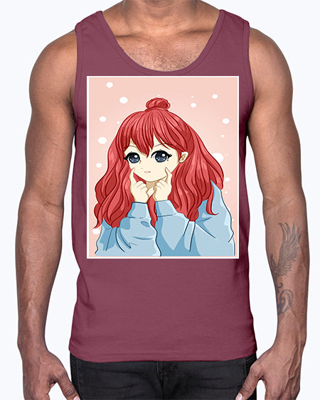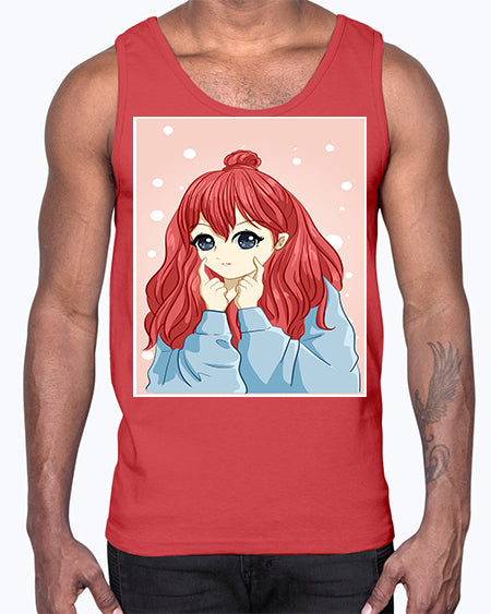 Beautiful and cute girl long red hair with jacket 150#- anime- Cotton Tank