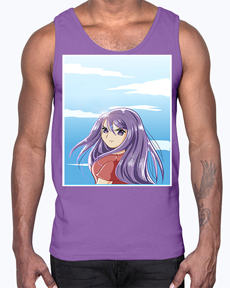Beautiful and cute girl purple long hair in the summer with 109#- anime- Cotton Tank