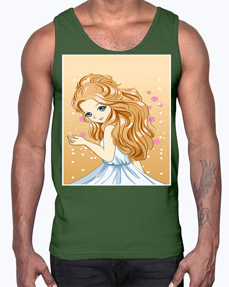 Beautiful and cute princess long blonde hair 13#- anime- Cotton Tank