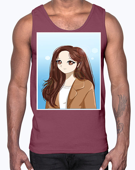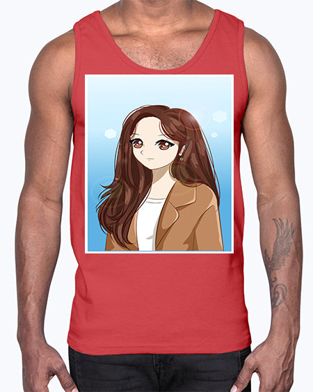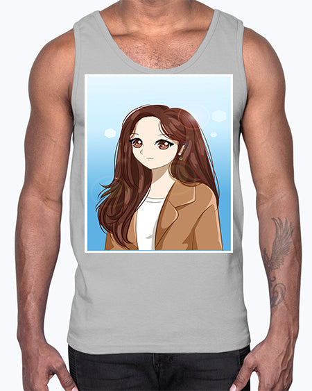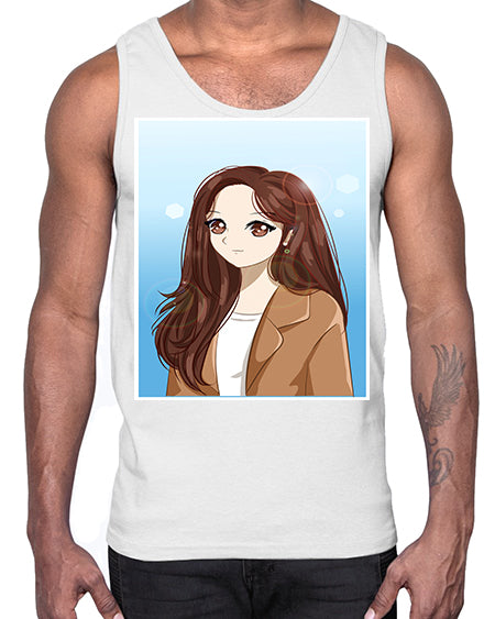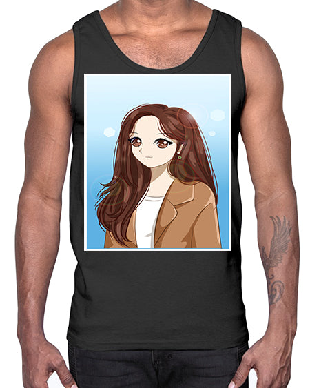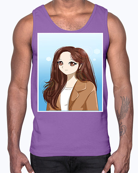 google-site-verification=jVrHOkW2AsgL_ozwUikqFQE6-Ke6U43Z8aLcUbXT5TE Beautiful and happy girl long hair with suit 94#- anime- Cotton Tank – Tshirt Unlimited