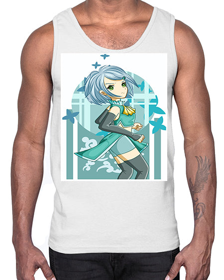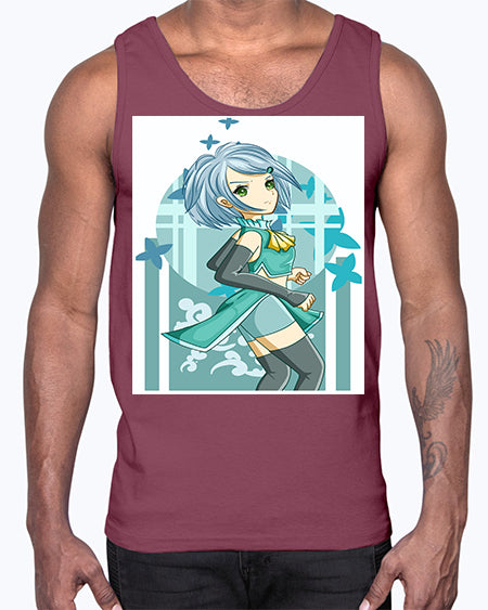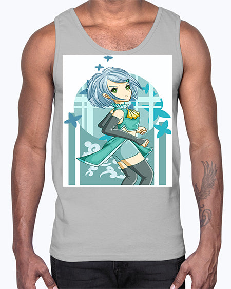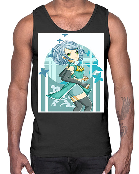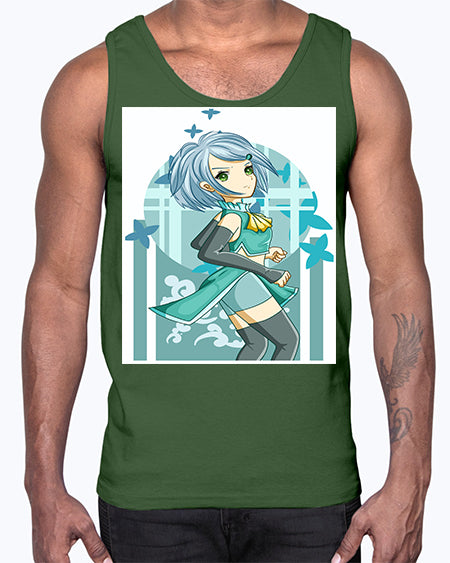 Beautiful girl blue hair with green clothes 161#- anime- Cotton Tank
