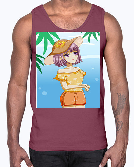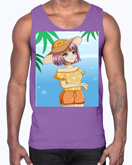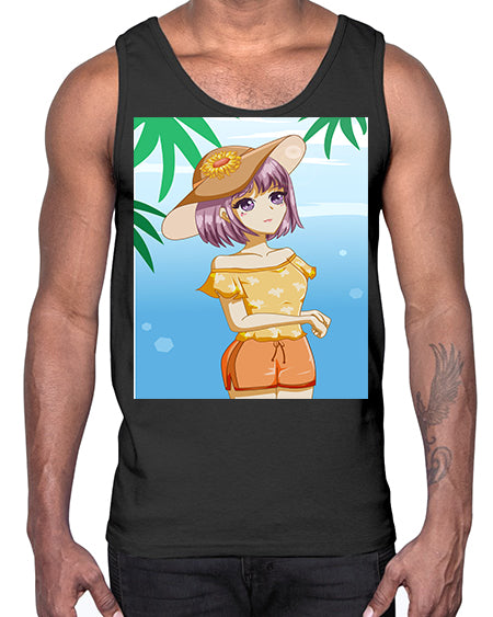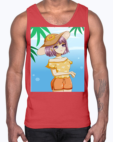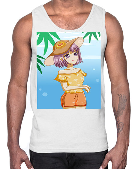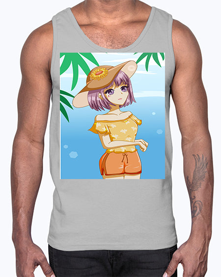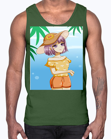 Beautiful girl in summer with sunflower 116#- anime- Cotton Tank