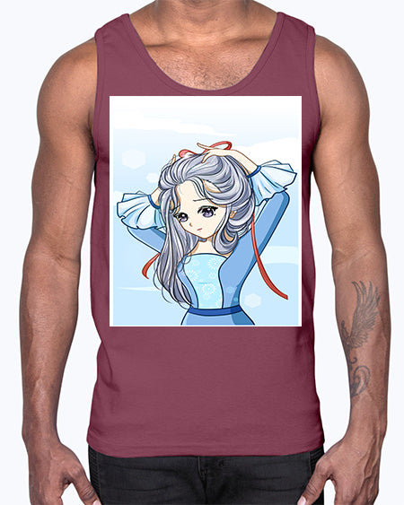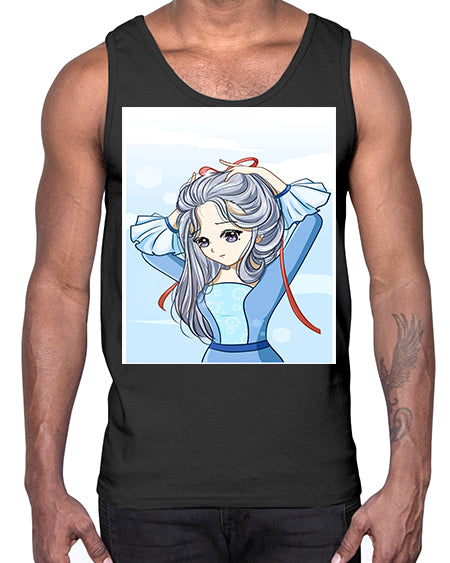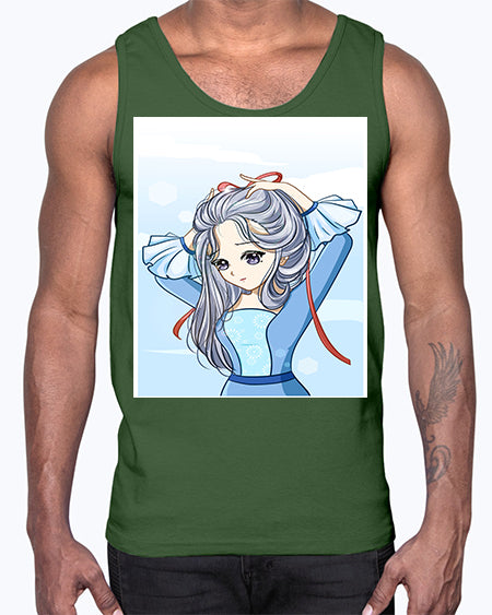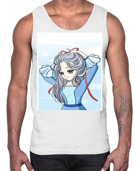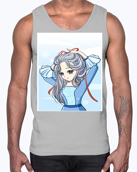 Beautiful princess silver hair with blue dress 120#- anime- Cotton Tank