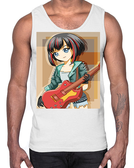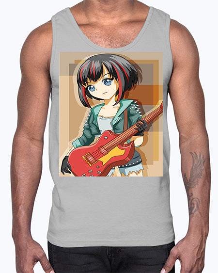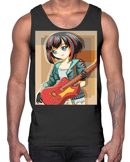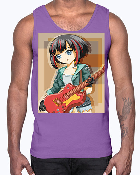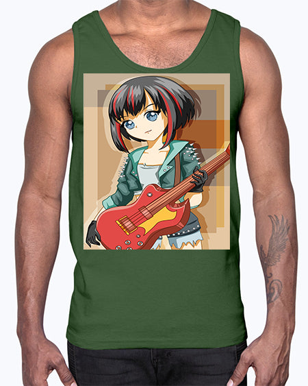 Beautiful rock girl with bass guitar perform 173#- anime- Cotton Tank