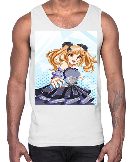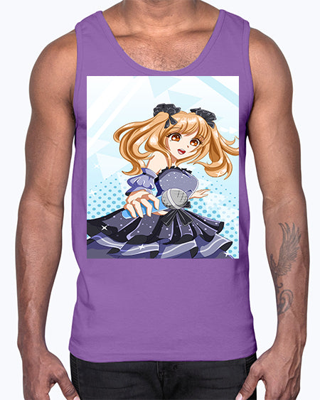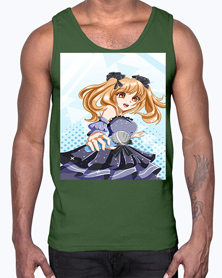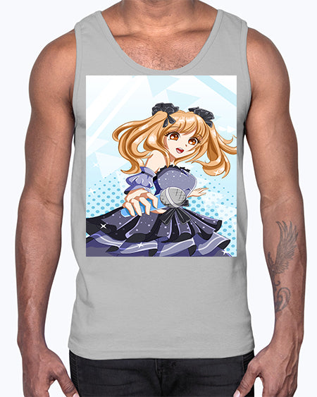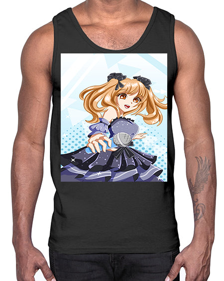 Beautiful singer girl with black dress 19#- anime- Cotton Tank
