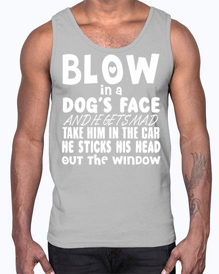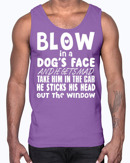 blow in a dogs face and he gets mad - dogs - Cotton Tank Note: There is a 2 - 4 day creation time, which may delay shipping. Details- Preshrunk jersey knit