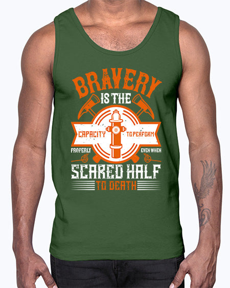 Bravery is the capacity to perform properly even when scared half to death Style 638#- fire fighter- Cotton Tank