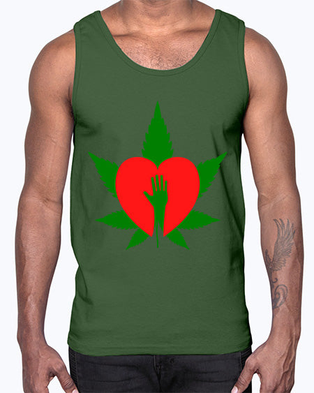 cannabis heart with hand 310#- marijuana- Cotton Tank