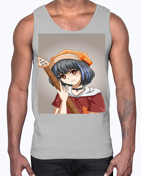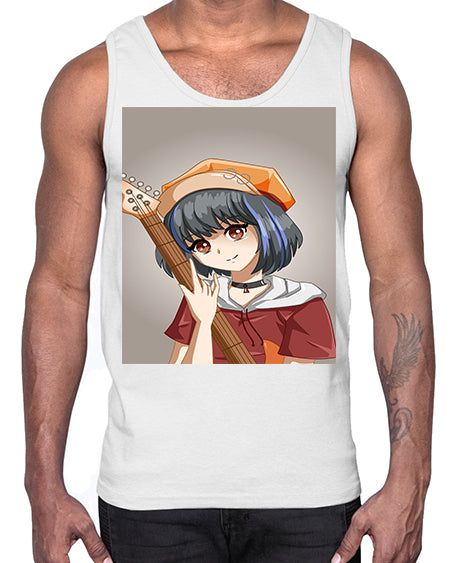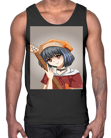 Cool and beautiful rockstar woman with guitar 8#- anime- Cotton Tank