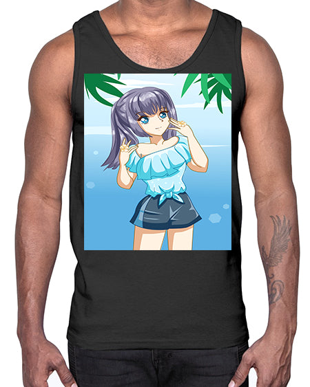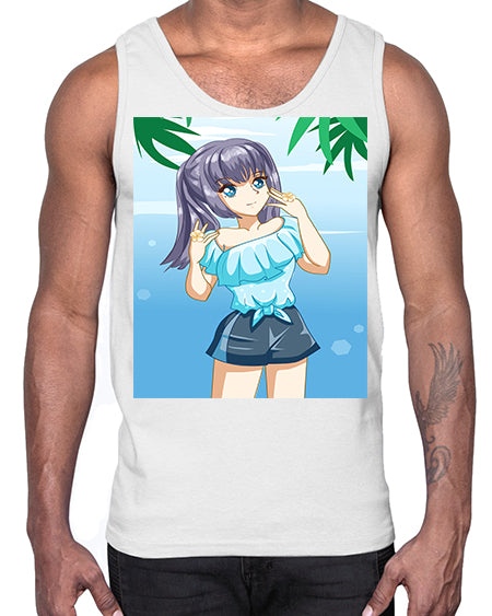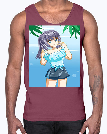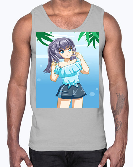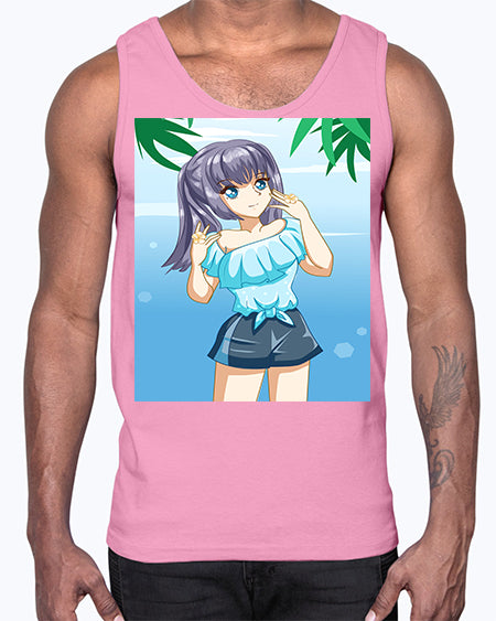 google-site-verification=jVrHOkW2AsgL_ozwUikqFQE6-Ke6U43Z8aLcUbXT5TE Cute and happy girl with blue shirt in summer 125#- anime- Cotton Tank – Tshirt Unlimited