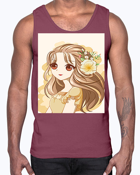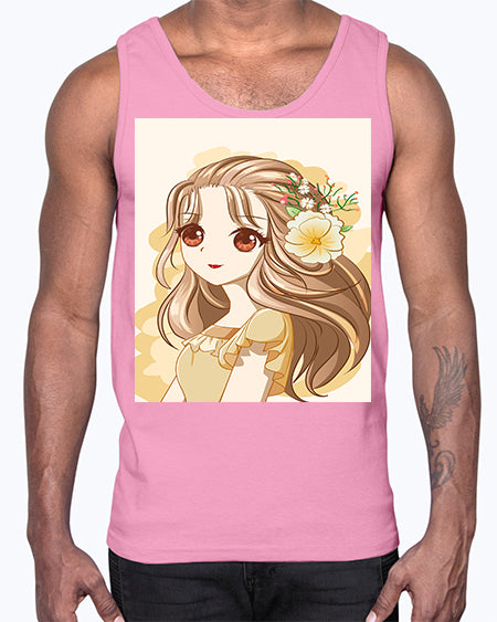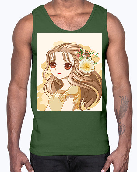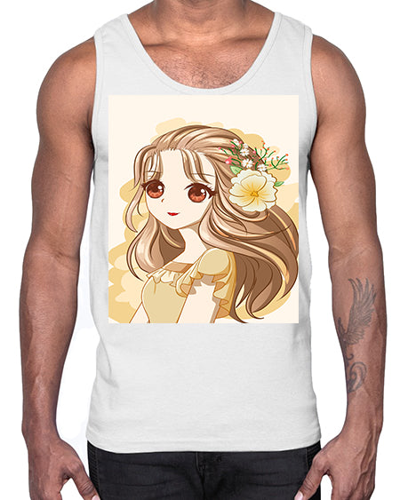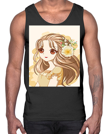 Cute and happy girl with flowers crown 57#- anime- Cotton Tank