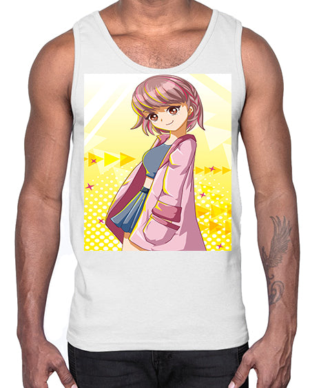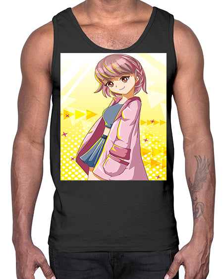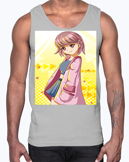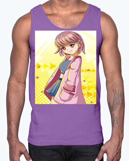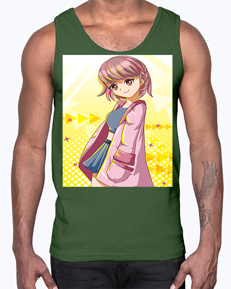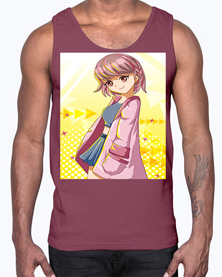 Cute and happy girl with pink coat 111#- anime- Cotton Tank