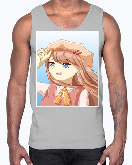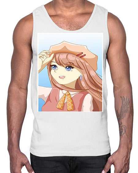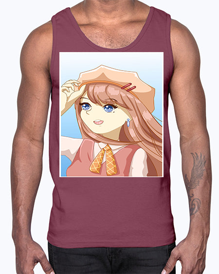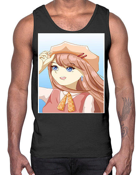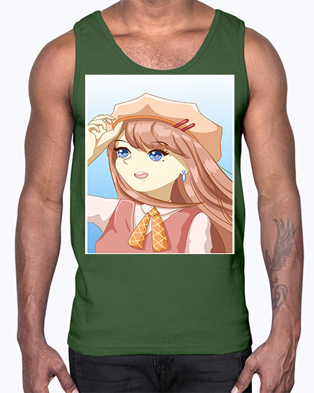 Cute beautiful and funny girl with hat 66#- anime- Cotton Tank