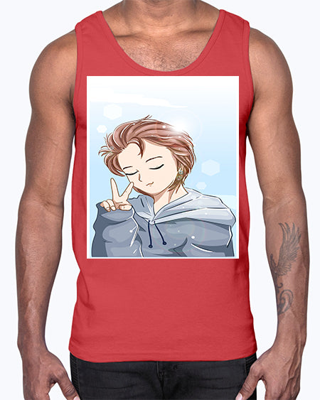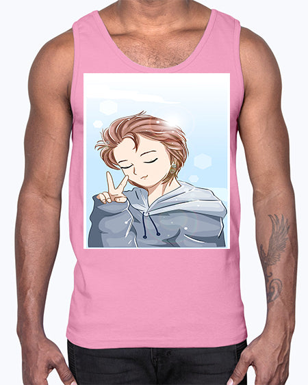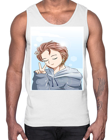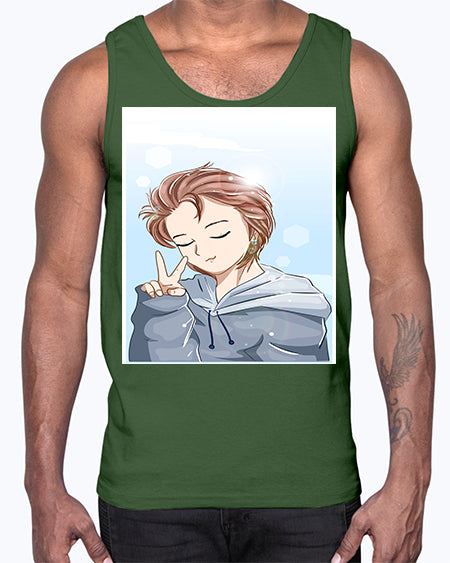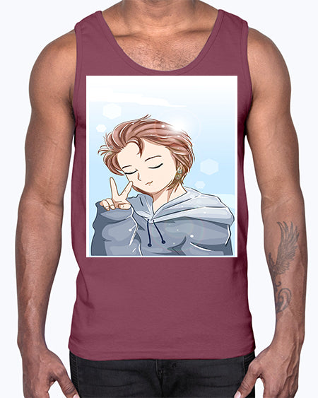 Cute boy brown hair with blue jacket 126# - Sub - Cotton Tank Note: There is a 2 - 4 day creation time, which may delay shipping. Details- Preshrunk jersey knit