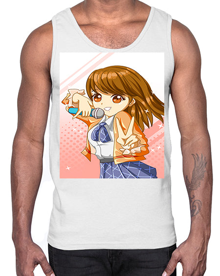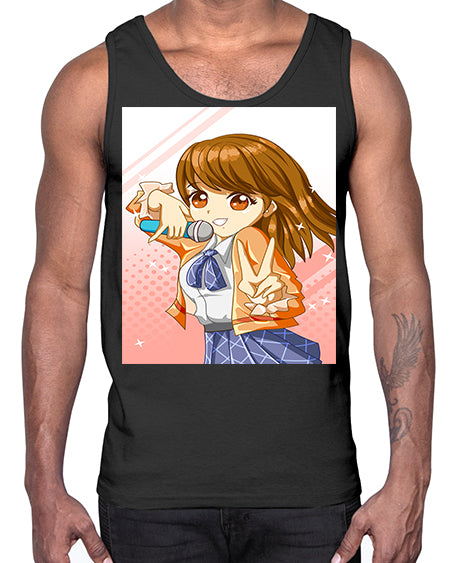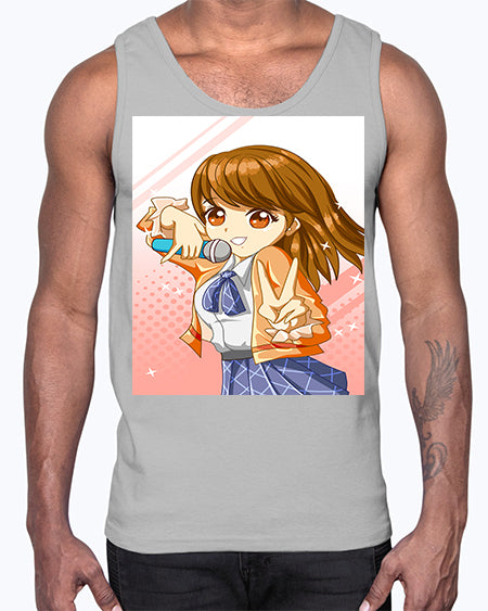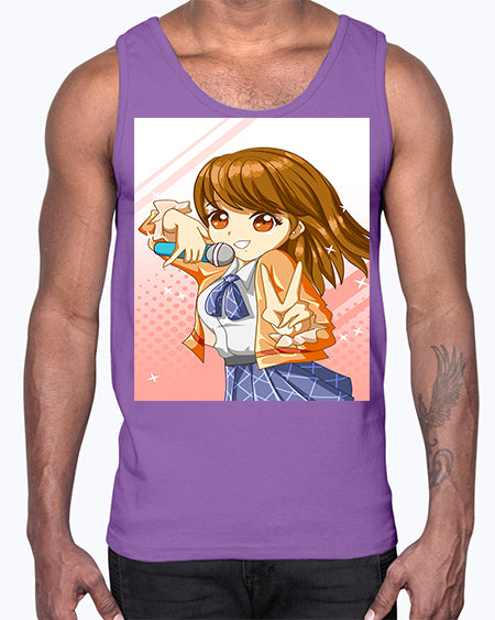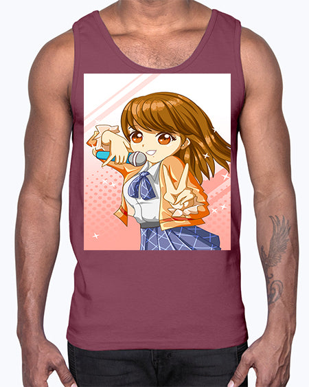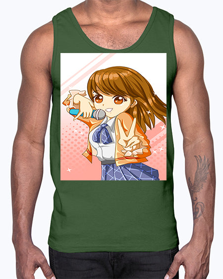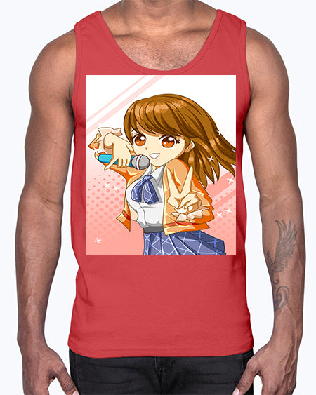 Cute teenage student girl singing song 47#- anime- Cotton Tank