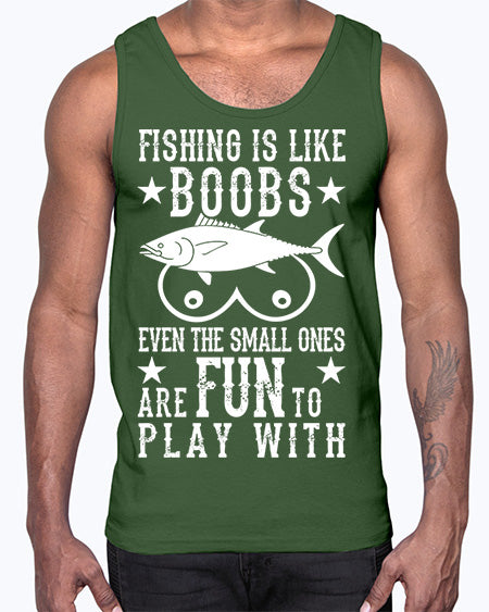 fishing is like boobs 88#- shark-fish- Cotton Tank