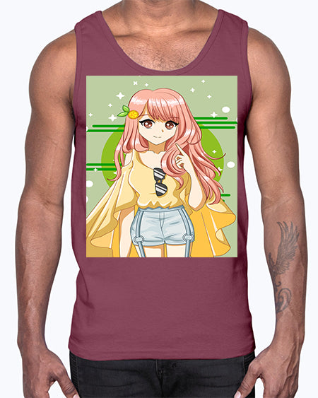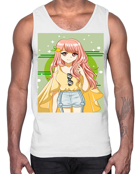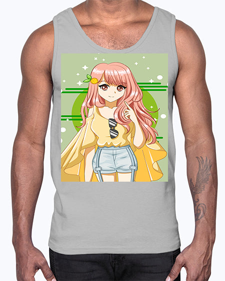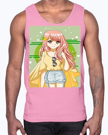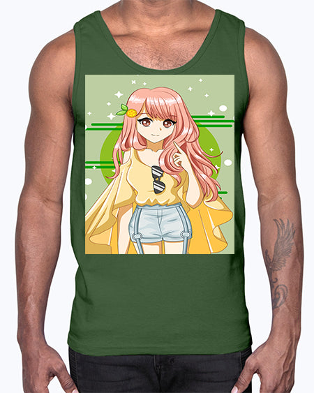 google-site-verification=jVrHOkW2AsgL_ozwUikqFQE6-Ke6U43Z8aLcUbXT5TE Happy and cute yellow blouse in summer holiday 43#- anime- Cotton Tank – Tshirt Unlimited
