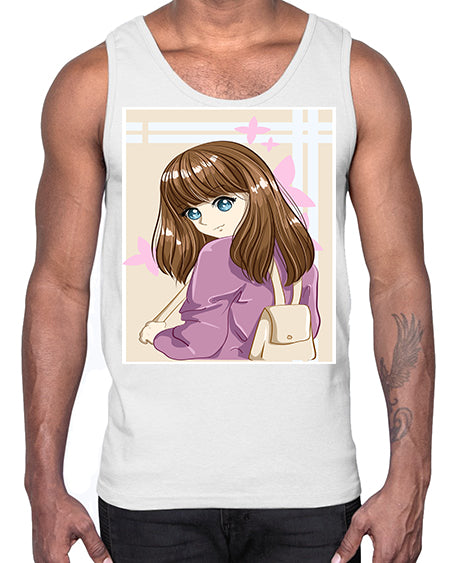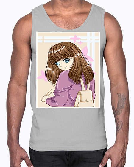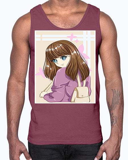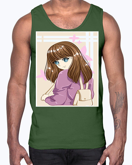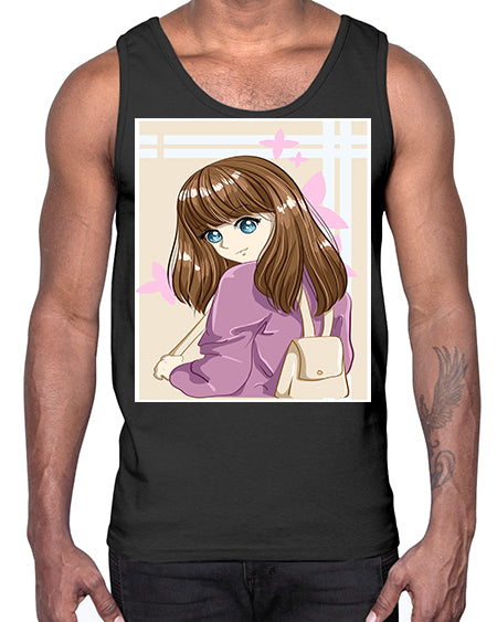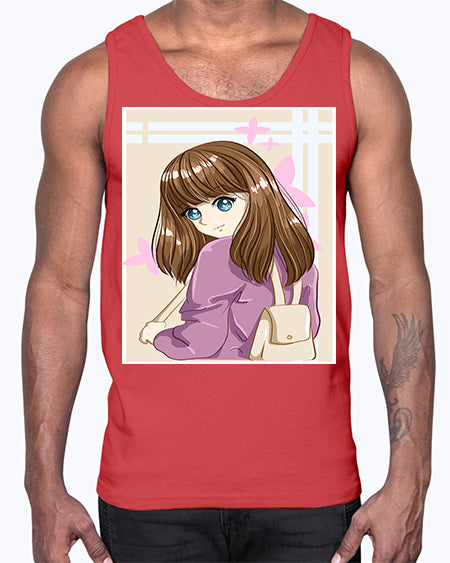 Happy and pretty college student carrying a bag 102#- anime- Cotton Tank