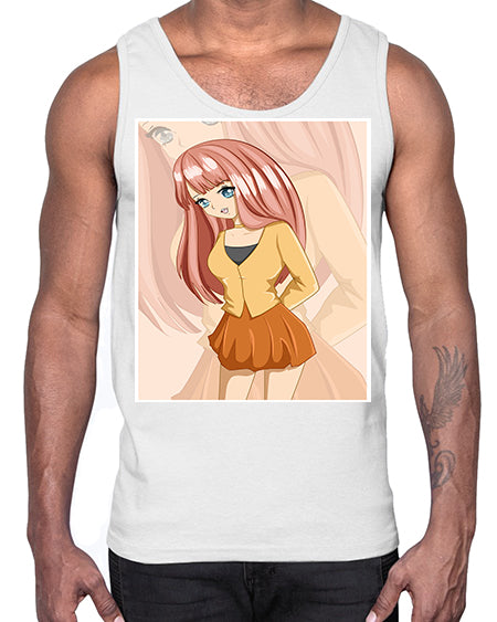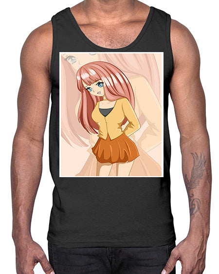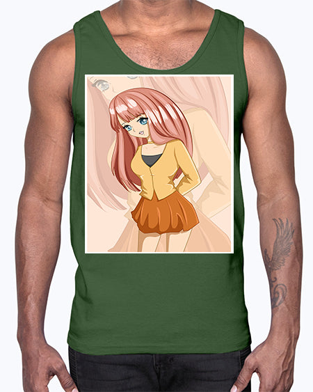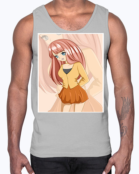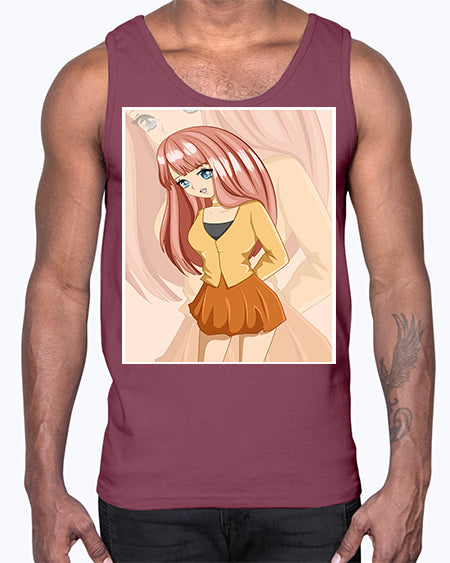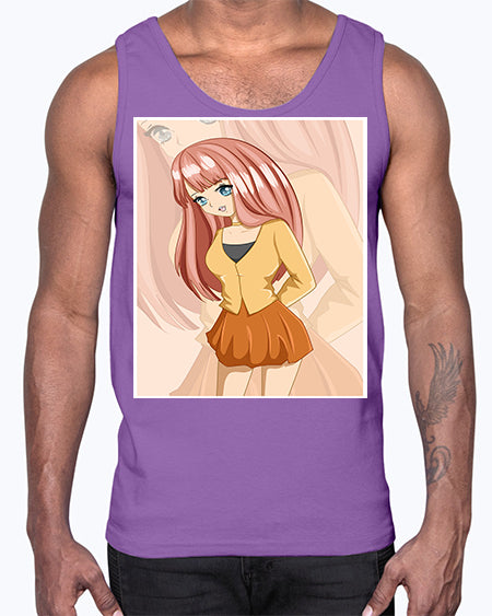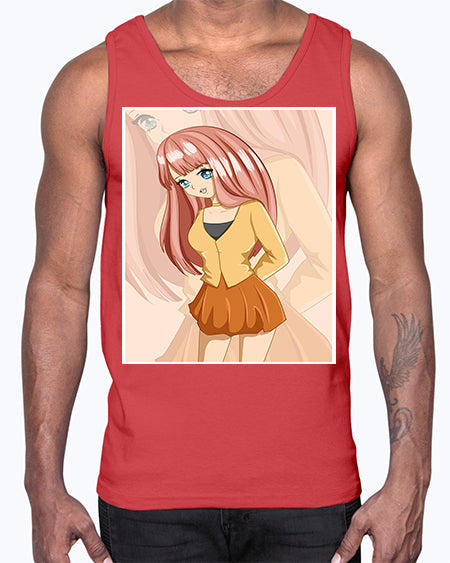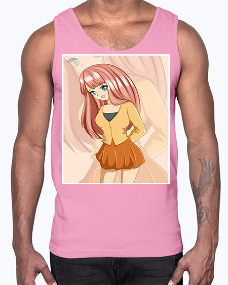 Happy beautiful and cute girl pink long hair 5#- anime- Cotton Tank
