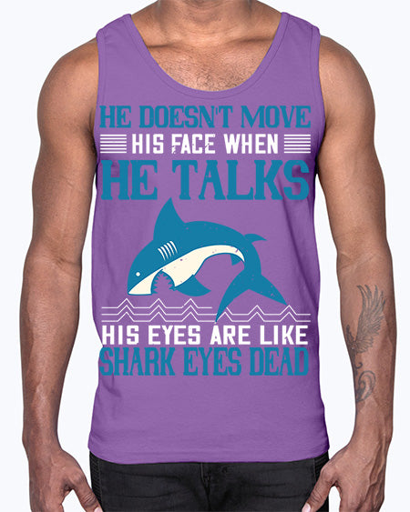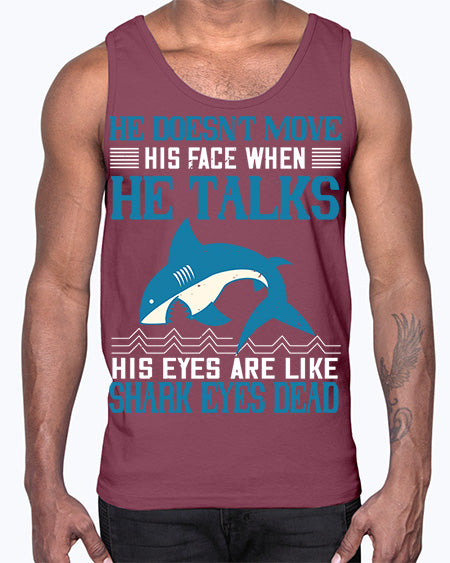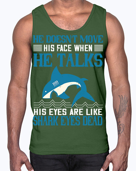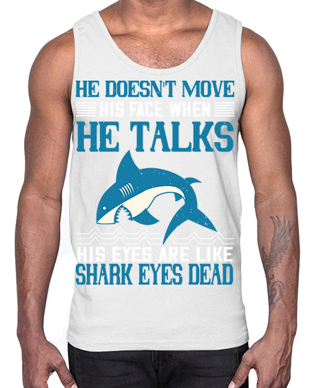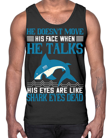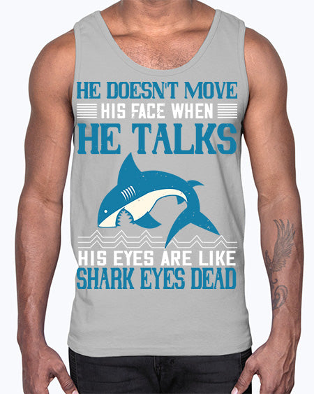 He doesnt move his face when he talks His eyes are like shark eyes Dead Style 88#- shark-fish- Cotton Tank