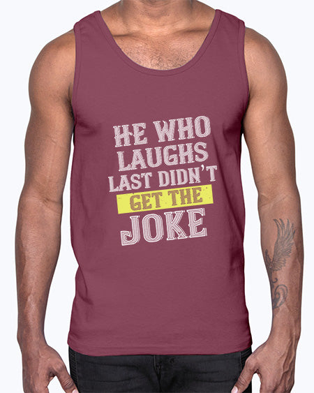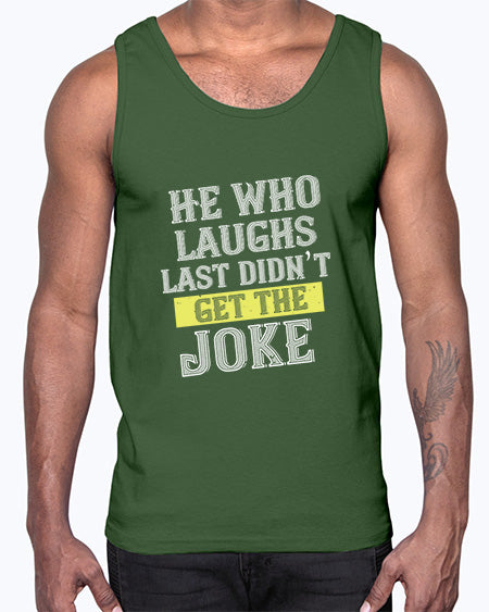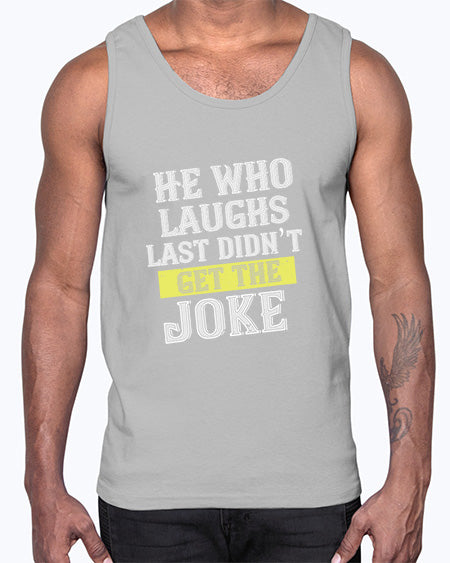 He who laughs last didnt get the joke 24#- funny- Cotton Tank