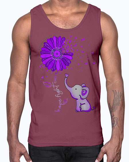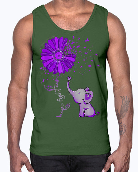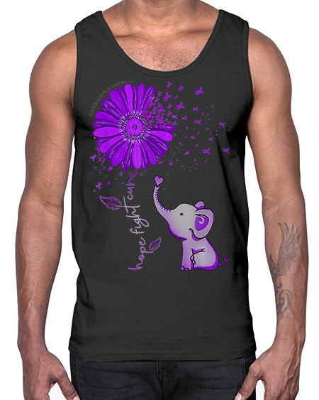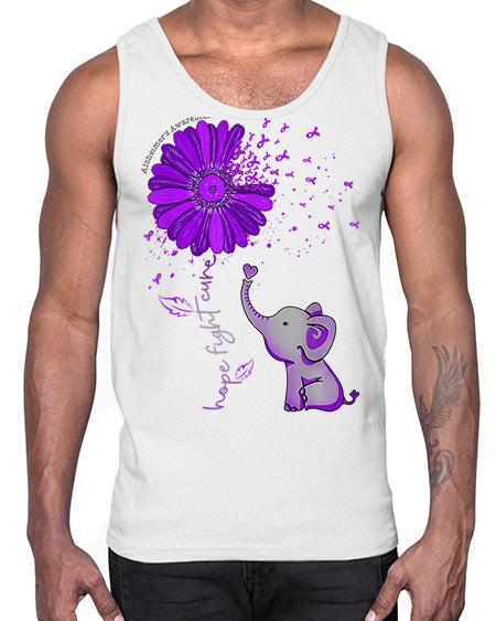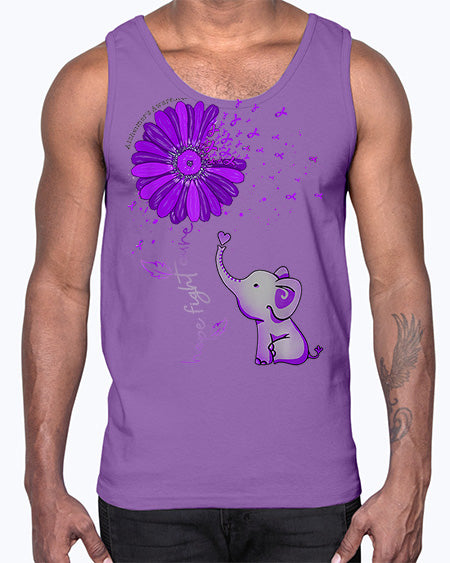 Hope Fight Cure Elephant Alzheimers Purple Ribbon 161#- alzheimers- Cotton Tank